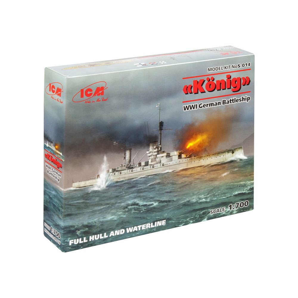 Збірна модель ICM – “König”, Німецький лінійний корабель (S.014) – це ідеальний вибір для шанувальників масштабних моделей. Ця пластикова модель відрізняється високим рівнем деталізації, що дозволяє відтворити кожну деталь легендарного корабля. Модель може бути зібрана як з повним корпусом, так і по вотерлінію, що додає ще більше варіантів для творчості.